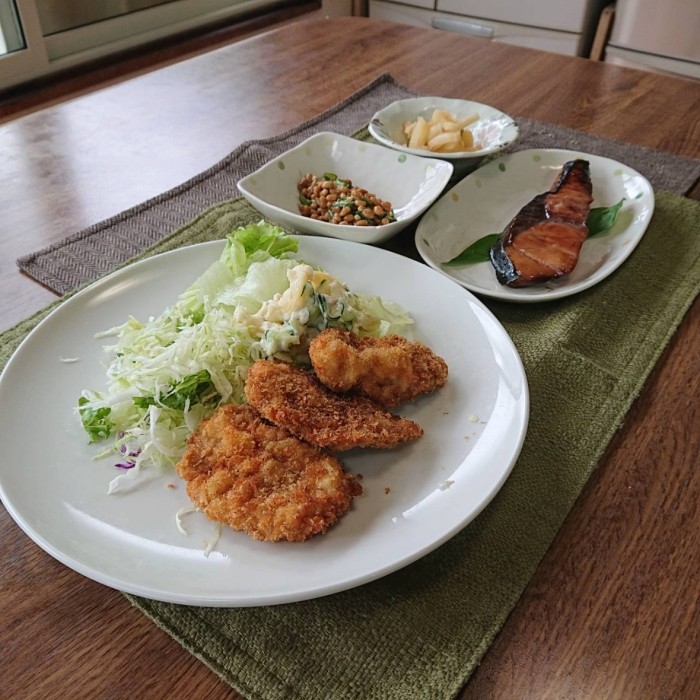 〆のお茶漬けにどうぞ。汁物は卵と青ねぎの味噌汁です。