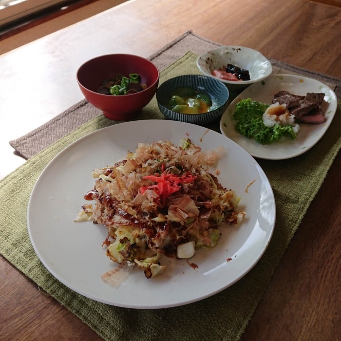 キャベツはあえて大きめの角切りにしてお好み焼きを作っています