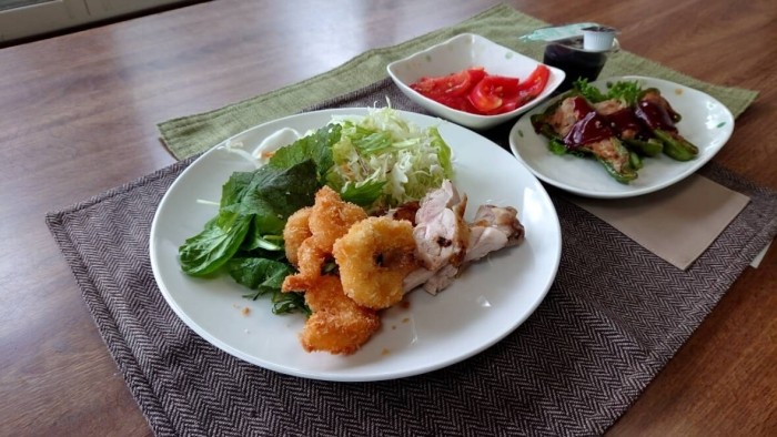 夏野菜の代表、ピーマンを肉詰めにしました。