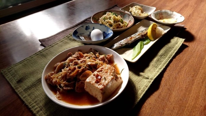 具と汁を分けて、木綿豆腐半丁を煮汁でじっくり煮込んで