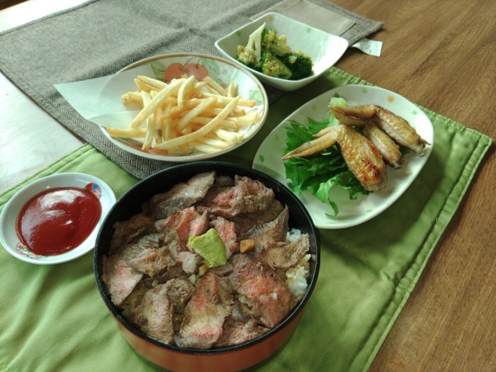乗せます。手羽先グリルとフライドポテトはお酒のつまみに。