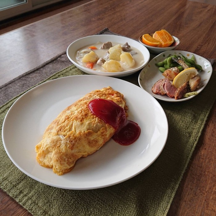 ケチャップライスにして卵ニケで包みオムライスとしました。