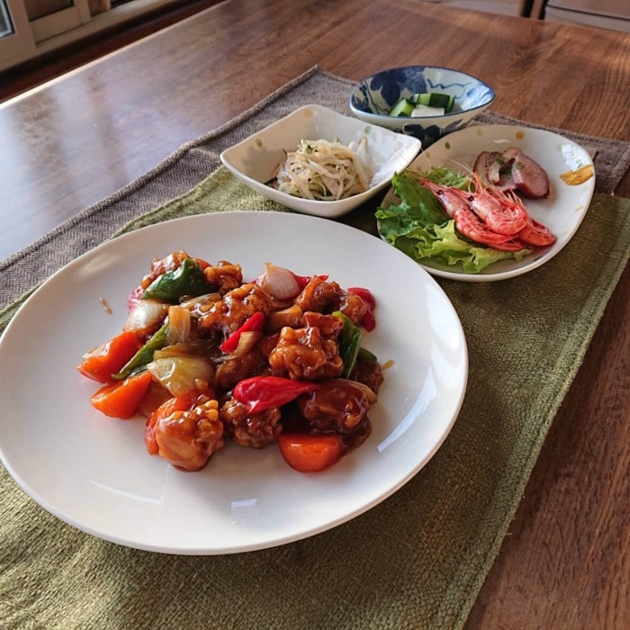 サラダ替わりにもやし、水菜、ロースハムのナムル。