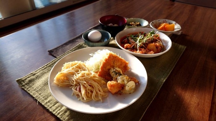 久しぶりのスパゲティサラダと一緒に盛り合わせしました。