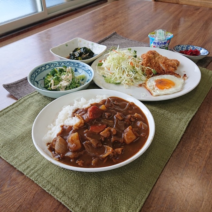 今日のメインは豚バラ肉のカレーライスです!(豚カツもあるよ!)