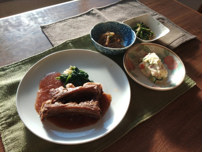 本日のメインは豚バラ肉のオイスターソース煮込みです。