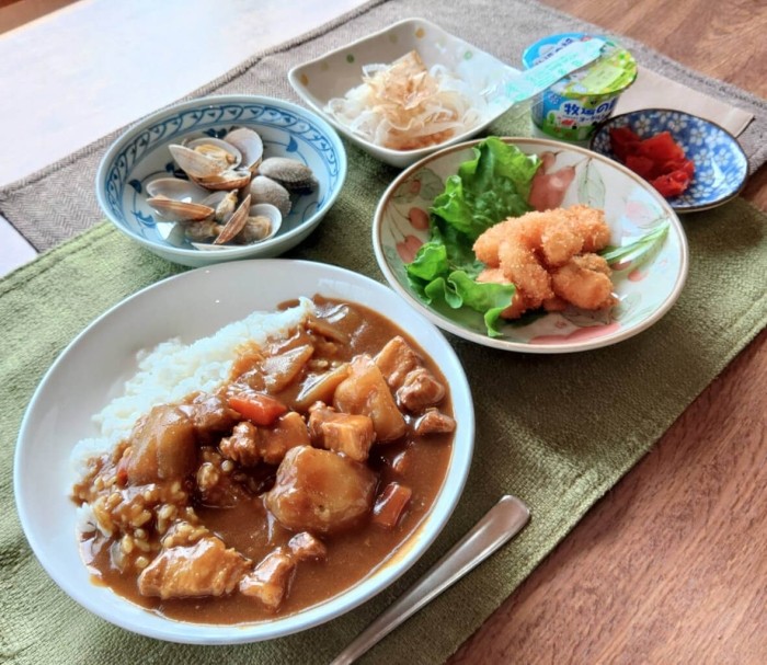 本日のメインは豚バラ肉の辛口カレーです!