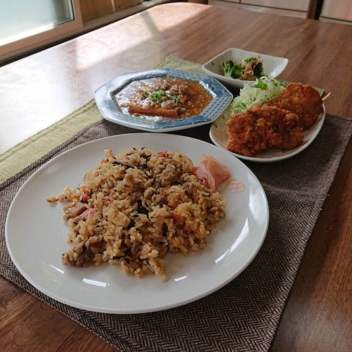 国産鶏小口切りをたっぷ入れたとりめしです。