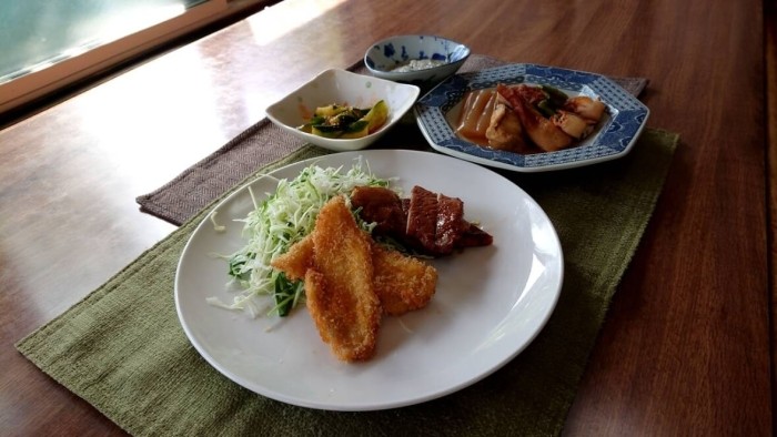 豚生姜焼きと平目フライ