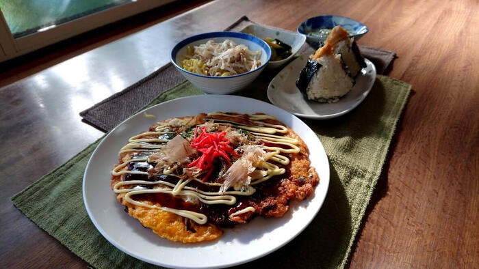 お好み焼きです。シャキシャキなキャベツと旨味がたっぷりの