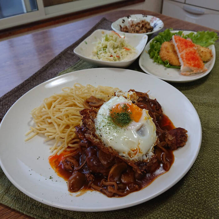 上には黄色く焼いた目玉焼きを乗せました。