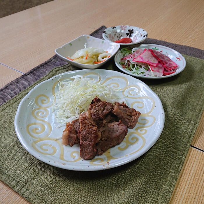 今日のメインは国産厚切り豚肩ロースの生姜焼きです!