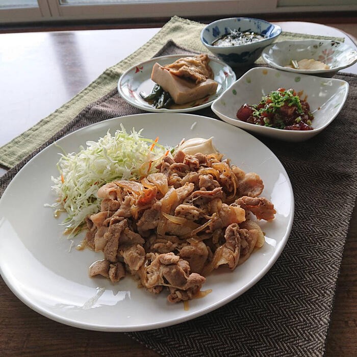 皮付き生姜のすりおろしを入れるタイプの生姜焼きです。