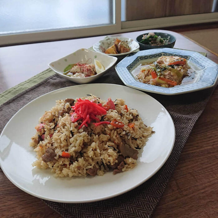 ひじき、油揚げなどと炒め、混ぜご飯の具としました。