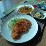 国産豚肩ロースに強めに塩胡椒をして焼き、食べやすい大きさにカットしておきます。