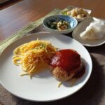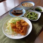 伊達産葉野菜と辛い大根、わかめ、かにかまでサラダです。