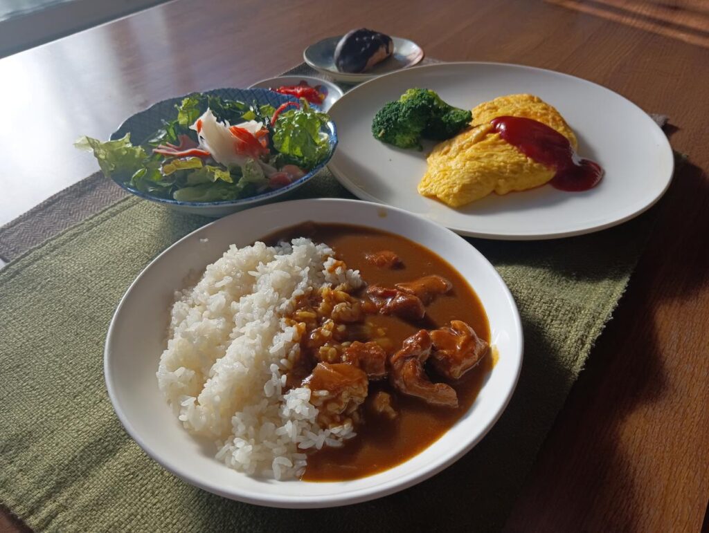 チーズオムレツに使った卵は一人前三個でお腹いっぱいです!!