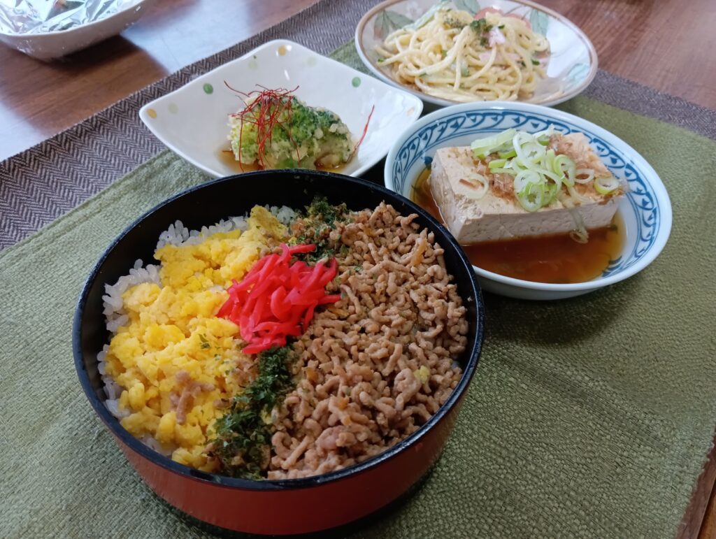 甘辛な手作り肉そぼろと甘優しい味わいの