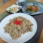 しっとり食べ応えのある和え物です。汁物はすり身と厚揚げの清まし汁です。