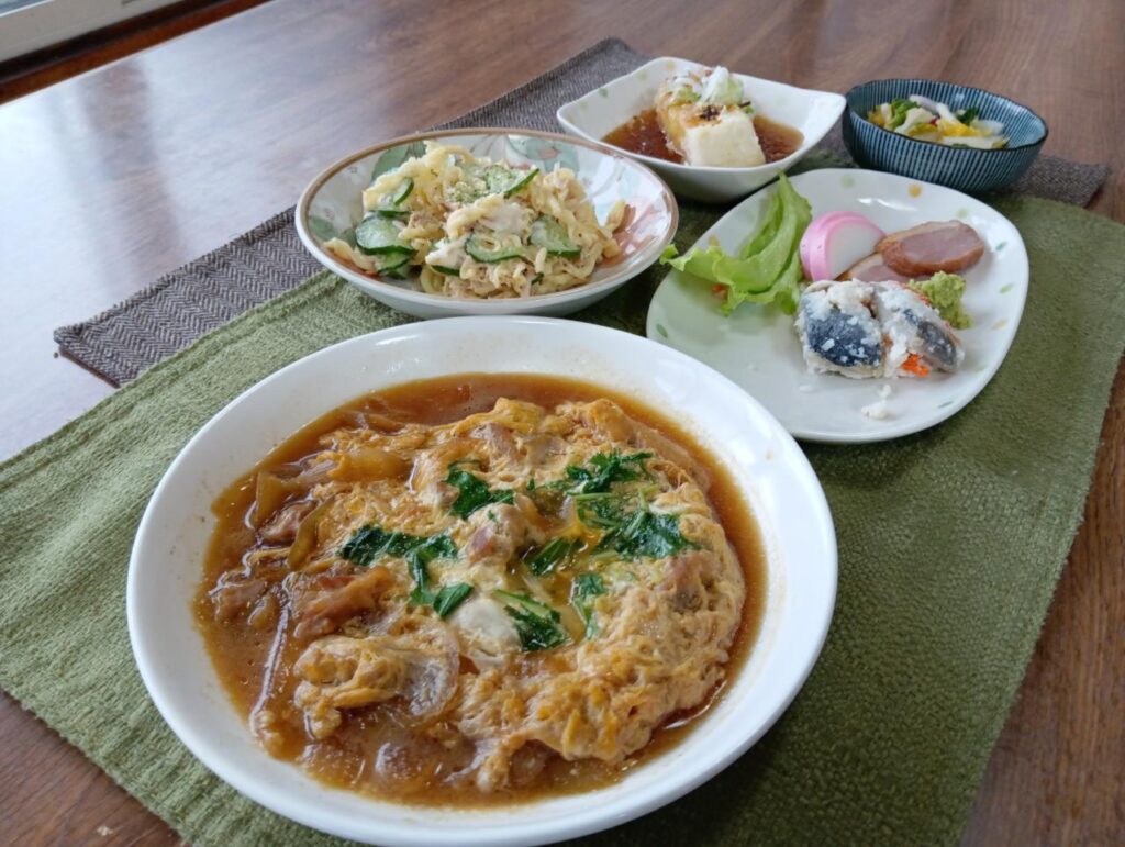 国産鶏もも小口切りとたっぷり玉ねぎで親子とじとしました。