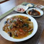 手作り浅漬けは昆布だしを利かせています。汁物、葱とわかめのシンプルな味噌汁です。