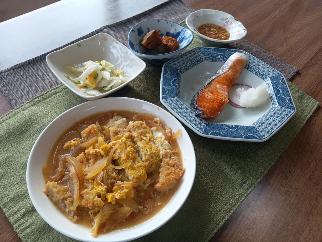 手作りの豚カツを甘じょっぱい煮汁で煮込んで