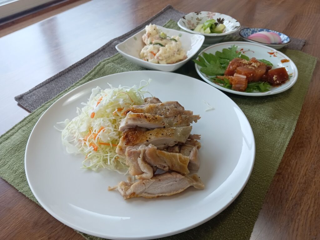 おろしたてのニンニクと塩をお肉に刷り込んで
