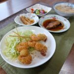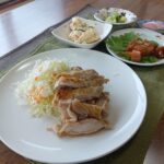 タレは、おろし生姜、ポン酢、中華ドレッシングを合わせたものです。