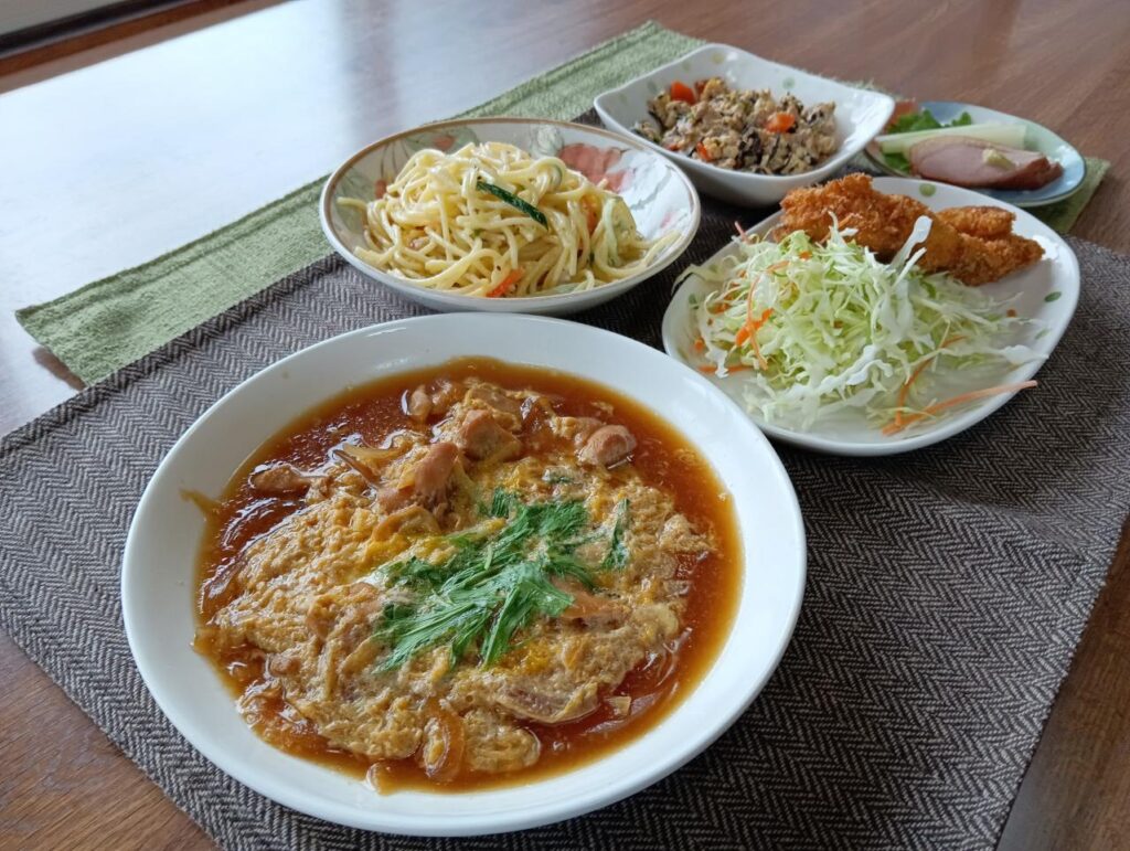 親子とじにしました。真ダラのフライは塩胡椒であっさり下味をつけフライに。