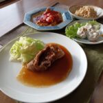 牛豚合いびきを肉種にしてチェダーチーズを挟みハンバーグにしました。