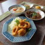お好み焼きの生地に茹でて細かく切った烏賊、青のり入りの手作り天かす、紅生姜、