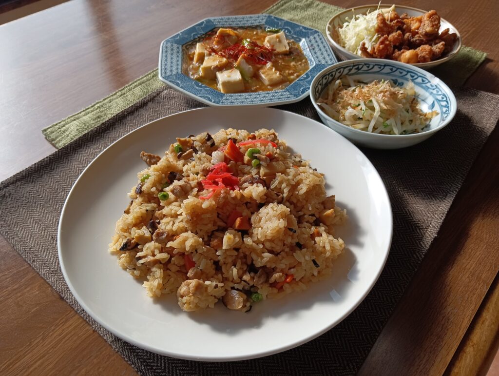 豚肩ロースの角切りと干しシイタケなどの具材が