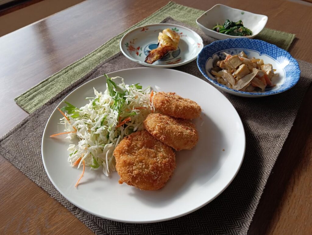 伊達産越冬じゃがいもで手作りコロッケを作りました。ひき肉と玉ねぎ、人参のみじん切りが入って