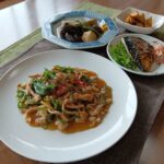 酢の物の代わりに薄切りのモーニングアシストでレタス、玉ねぎ、きゅうりなどを入れてマリネに。