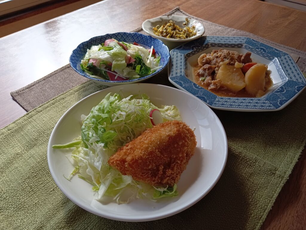 北海道産豚もも切り落としとじゃがいも、人参、玉ねぎをシンプルな肉じゃがにしました。