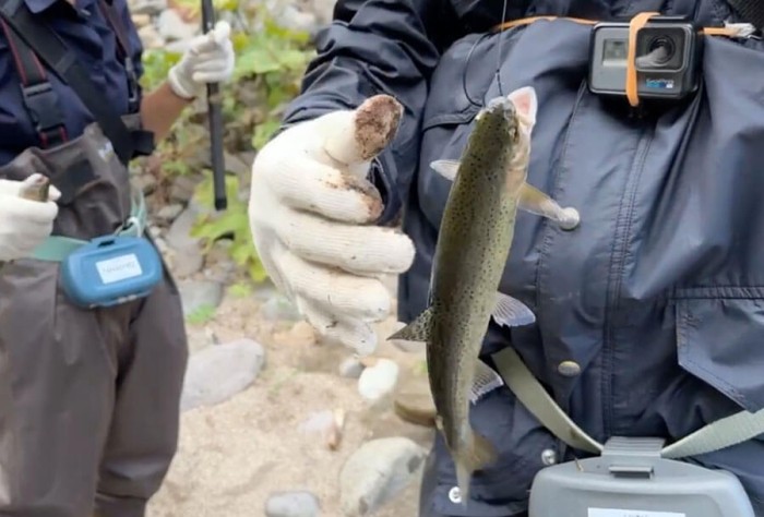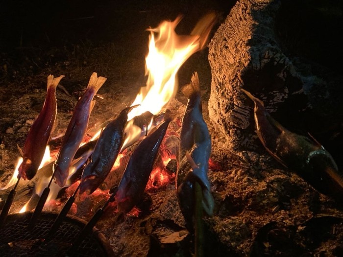 川辺で簡単に内臓を処理する方法を見せていただいた。