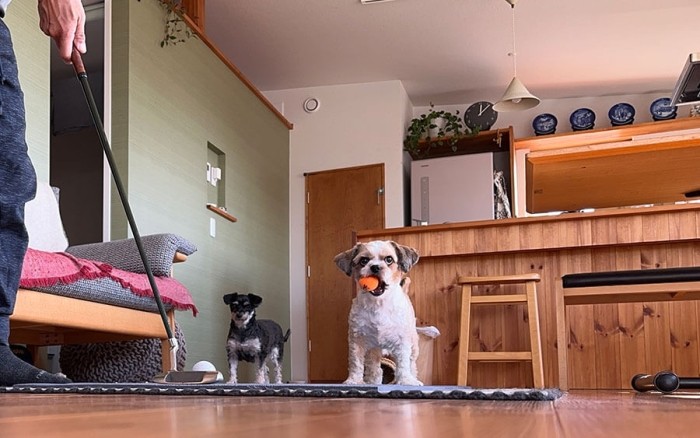 我が家は板間でボールを芝のように転がせない。
