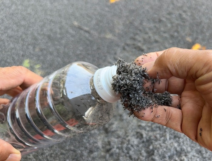 神社境内の入り口の道にびっちりと密集していたヤツら。