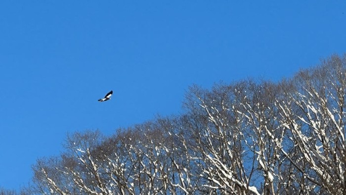 雪が降ったばかりで木に止まっている彼らがよく見つかる。