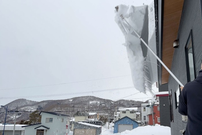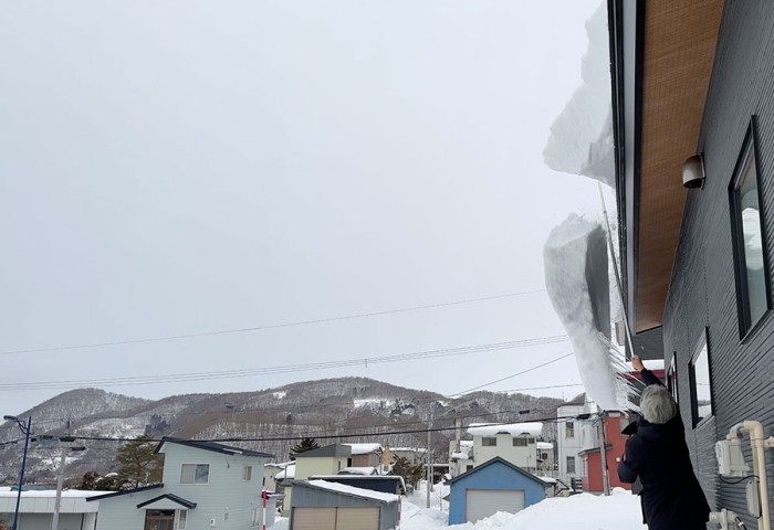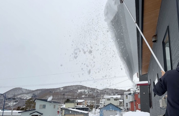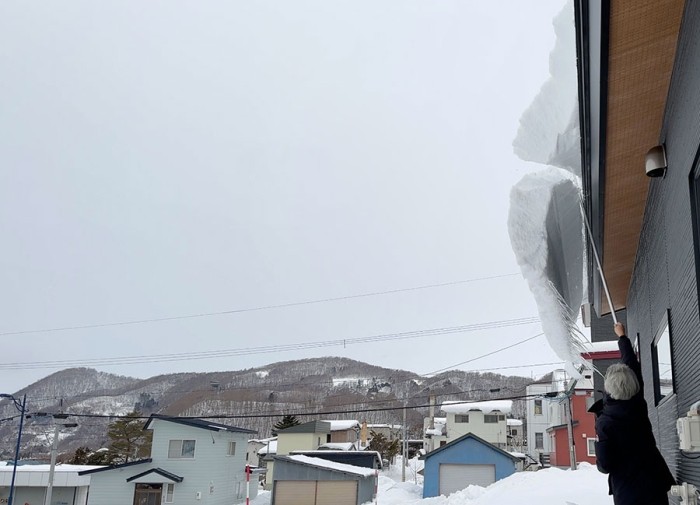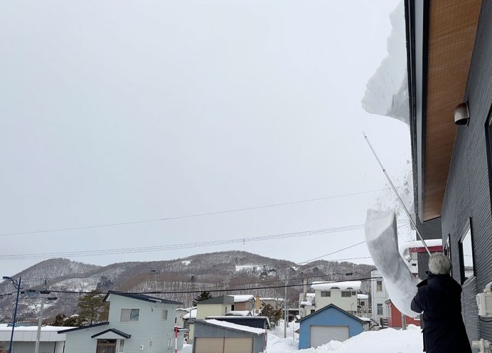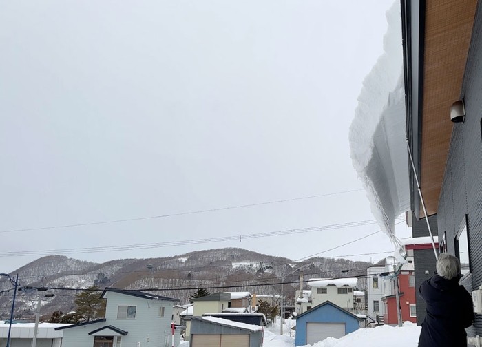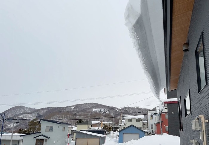 大雪のあとの好天気と暖気が入ると屋根の雪がずれ落ちてくる