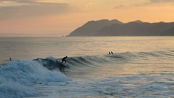 この日は後半から条件がそろって豊浦がベストの波が立った。