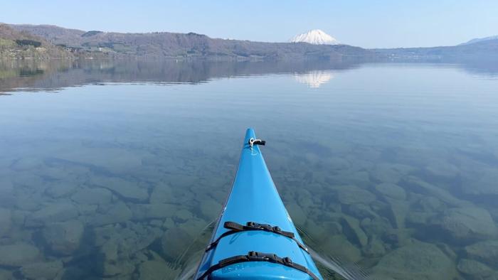 カミさんとベタ凪の洞爺湖の中島周辺まで探索した。