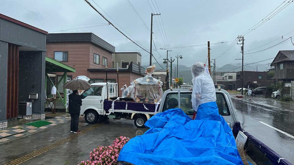 今回は本祭の神輿渡御のときに大雨に降られたり、