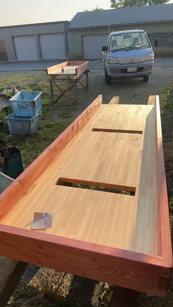 シャッフルボードテーブルの下の台架台部分を製作することにした。