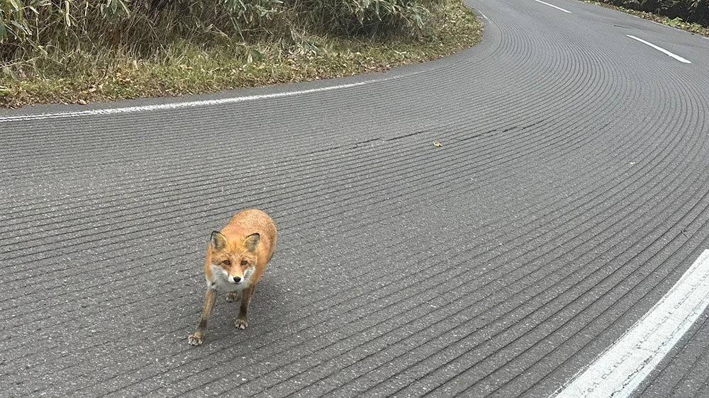 途中いろいろな動物が道路に出てくるので、注意しながら支笏湖畔をドライブする。