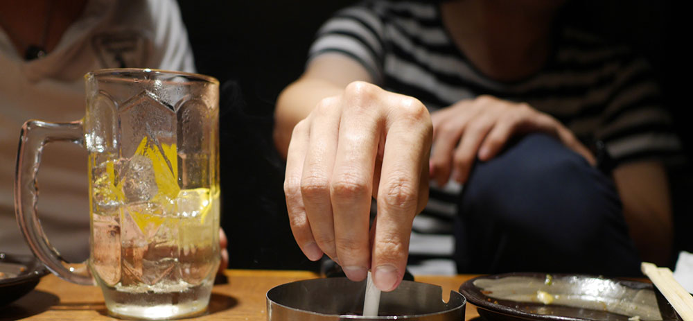 それは、居酒屋などで同僚たちと飲み会をしているときに、机の下に灰皿を隠してタバコを吸っている自分に気づき、「あ、気づかれたな?やばい!」と慌てて火を消すという内容の夢だ。