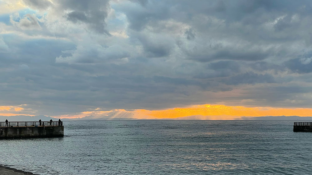 そんな冬の入り口に入った日の夕方、浜に出てワンズの散歩をした。