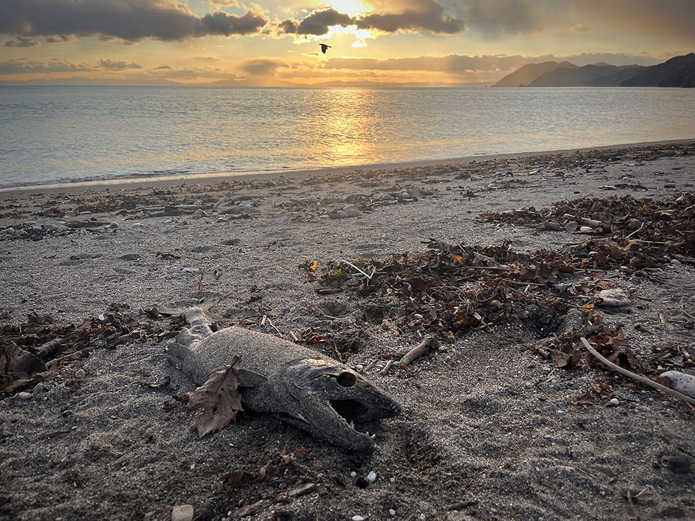 浜に打ち上げられた鮭は4年ほどの大海の旅の末、最期は残念ながら川まで辿り着けなかったのか。