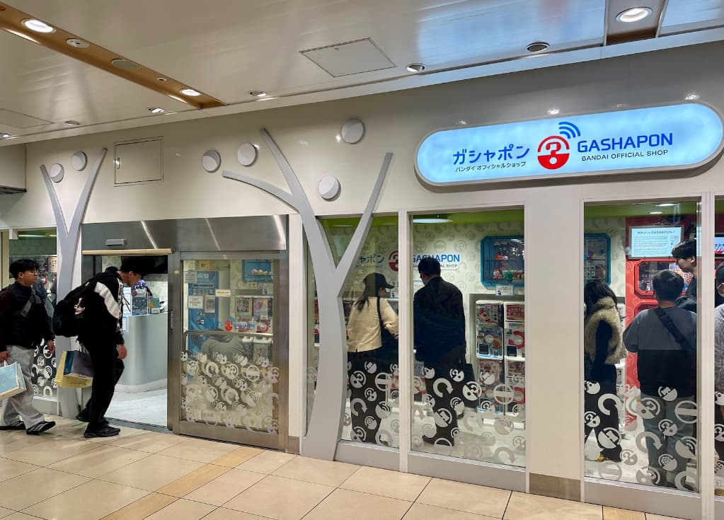 ガチャポンが何十台も置いてあり、人が群がっている。