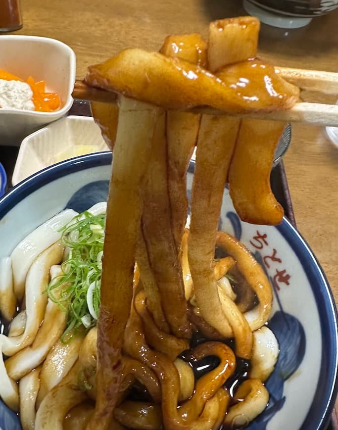 だが、汁は色の濃さほどでもなく、魚の出汁が効いていてなかなかうまい。